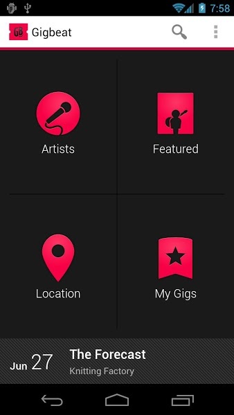 GigBeat no se limita a generar una lista con todos los conciertos, sino que también es capaz de deducir tus gustos musicales analizando la colección de canciones de tu dispositivo Android para mostrarte cada concierto que puede ser de tu interés, enviándote una notificación en caso de que una banda que esté entre tus favoritas vaya a dar un concierto próximamente.